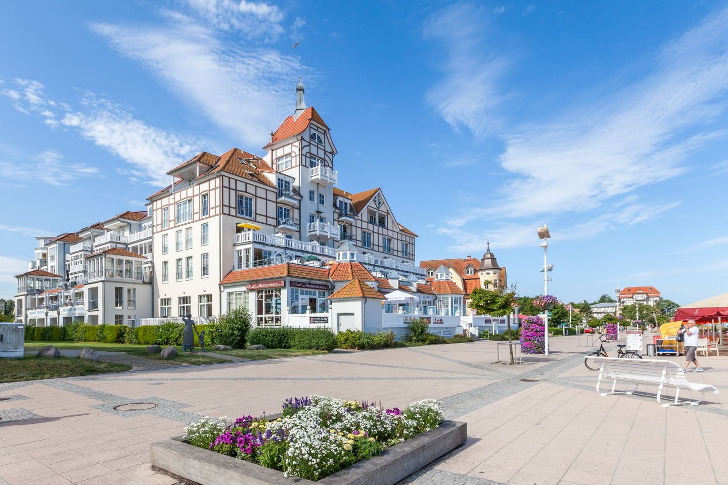 Das Haus Meeresblick in Kühlungsborn West liegt unmittelbar an der Strandpromenade und bietet einen schnellen Zugang zum Ostseestrand. Auf der Nordseite des Hauses befindet sich ein exklusives Café mit großzügiger Sonnenterrasse und fantastischer Sicht auf die Ostsee. Einkaufsmöglichkeiten liegen in unmittelbarer Nähe.