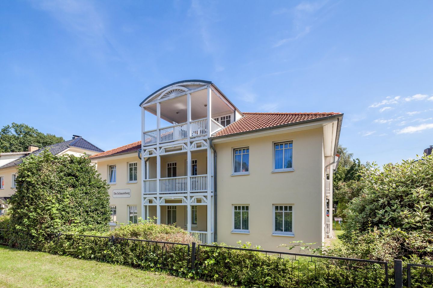 Unsere Apartmentanlage Schaumburg befindet sich im Zentrum von Kühlungsborn West. In nur ca. 150 m Entfernung befindet sich der feinsandige Ostseestrand. Auch die beliebte Spaziermeile, die Strandpromenade, ist vom Haus Schaumburg gut zu Fuß zu erreichen.