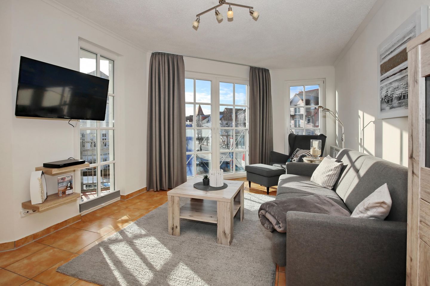 Die gemütliche 3-Zimmer-Ferienwohnung befindet sich im 1. Obergeschoss des „Atlantik“ und lädt dich auf 67 m² zu schönen Urlaubstagen direkt an der Seebrücke ein. Die Wohnung erwartet dich mit einem kombinierten Wohn- und Essbereich, einer modernen Einbauküche sowie zwei Schlafzimmern und einem Duschbad. Auf dem möblierten Balkon mit Süd-Ausrichtung genießt du die Sonnenstunden des Tages. Zum Strand und zur Seebrücke gehst du nur 50 Meter.